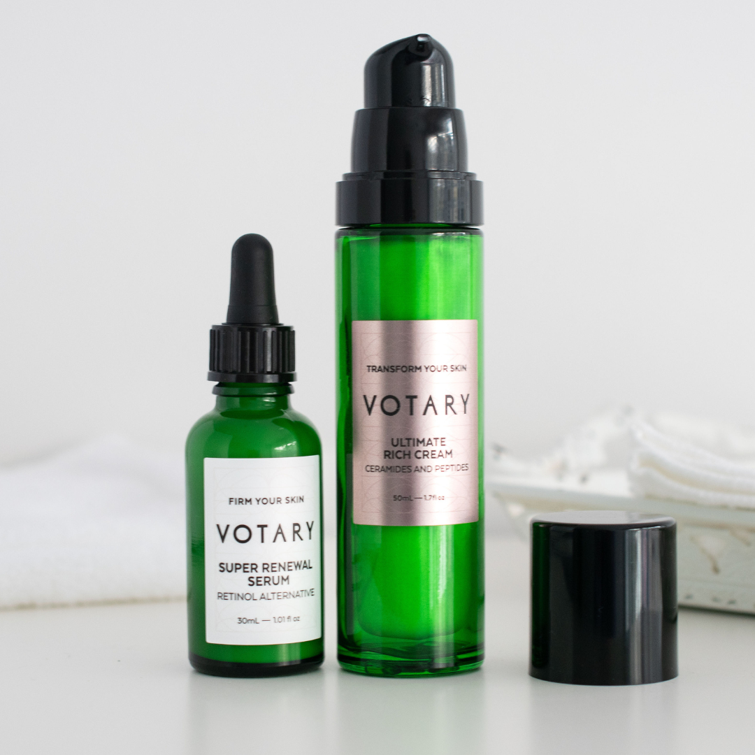 Super Renewal Serum is formulated with a natural alternative to retinol, suitable for sensitive skin. This high tech formulation is boosted by bakuchiol for skin smoothing, hyaluronic acid for hydration and VOTARY’s Super Seed oil blend for deep and soothing nourishment.